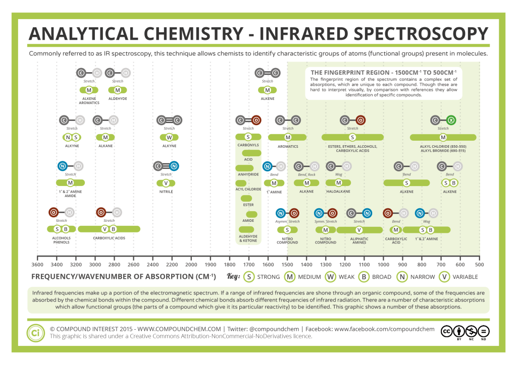 In chemistry, say that you have synthesized a compound. How do you understand its nature of bonding and the atoms it contains? You can narrow the field by limiting the reactants you have used for synthesis. We can use spectroscopy to identify all the particulars of that molecule through NMR and Infrared Spectroscopy. NMR (Nuclear Magnetic Resonance) spectroscopy, uses the energy states of Hydrogen nuclei and their transitions to identify the number of hydrogens in the molecule and the nature of atom it is bonded to. We also have Carbon NMR to identify the carbon content and the nature of carbon in the molecule; if it a double or triple bond or a aromatic system like benzene. The IR spectroscopy is special.